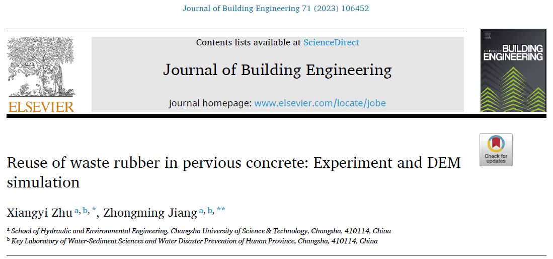 近日,我院朱祥意博士的最新科研成果“废橡胶在透水混凝土中的再利用”发表在混凝土领域权威期刊《Journal of Building Engineering》(SCI源刊,JCR分区:Q1,IF= 7.144),437必赢会员中心水利与环境工程学院为唯一单位。
