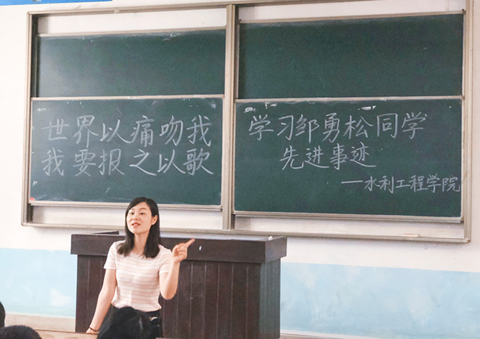 6月11日上午,水利工程学院于金盆岭校区3教115召开 “学习邹勇松同学先进事迹”的主题班会。本次大会由班长伍楚寒主持,辅导员刘灿老师出席,全体17级研究生到场参加。