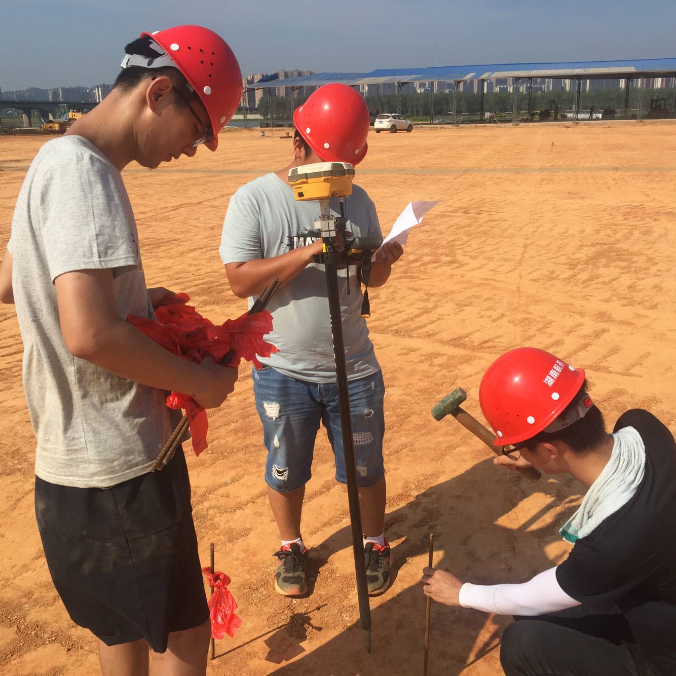 次日,成员们来到各自所属的项目部报道,成员们在工人师傅的指导下,参加了基本工种的专业生产劳动,如模板加工,混凝土的配料等,并在工地技术人员的指导下,成员们进行了相关的测量方向工作,同时在资料管理室进行了设计文件,施工组织设计以及工程建设法规和环评报告的学习。