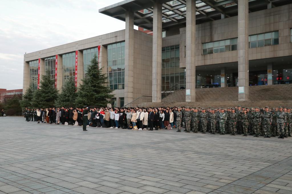 2019年11月19日,水利工程学院在云塘校区图书馆前坪举行2019-2020学年第一次升旗仪式。参加本次升旗仪式的有院党委副书记王学成、院辅导员肖苹宁、杜丘及2018级全体学生。