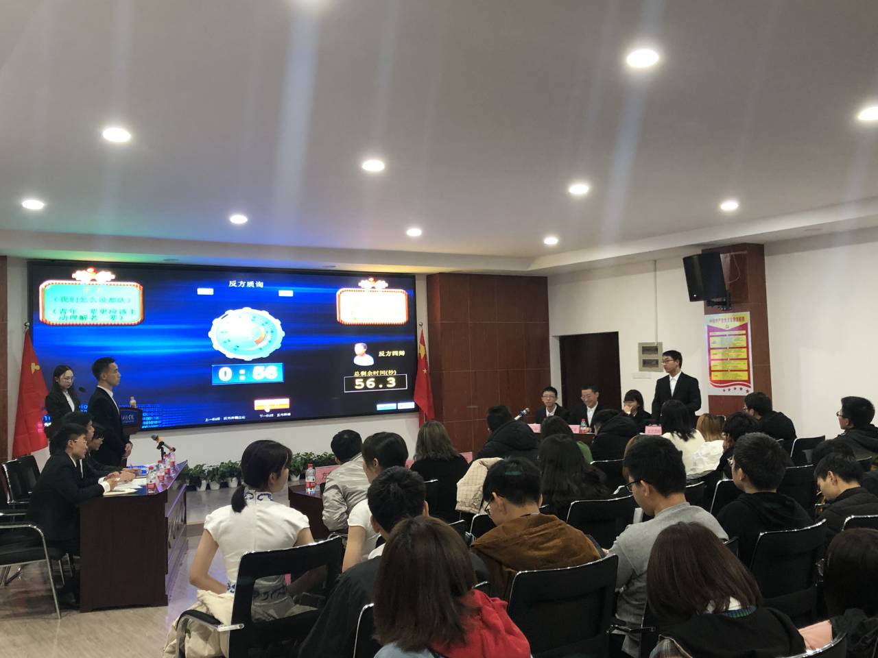 本次比赛的辩题为“老一辈更应该主动理解年轻一辈/年轻一辈更应该主动理解老一辈”,正方水利1901班和反方水利1902班就该辩题展开了论证。正反双方一辩开篇立论,句句切题,双方四辩倾心而听,捕捉漏洞,发起质询。经过精彩的二辩驳论、对辩及三辩质询环节,本次比赛进入自由辩论环节。双方分秒必争,交锋不断,反方三辩更是接连反驳,比赛高潮迭起。在“奇袭”环节,由水之清辩论队16级队长梁雨沁、水之清辩论队16级领队王芷萱分别向正反双方提出问题,辩手们沉着回应,对答自如。在最后的四辩总结中,辩手在强调自己的观点同时也不断挖掘对方观点漏洞,给予对方最后一击。