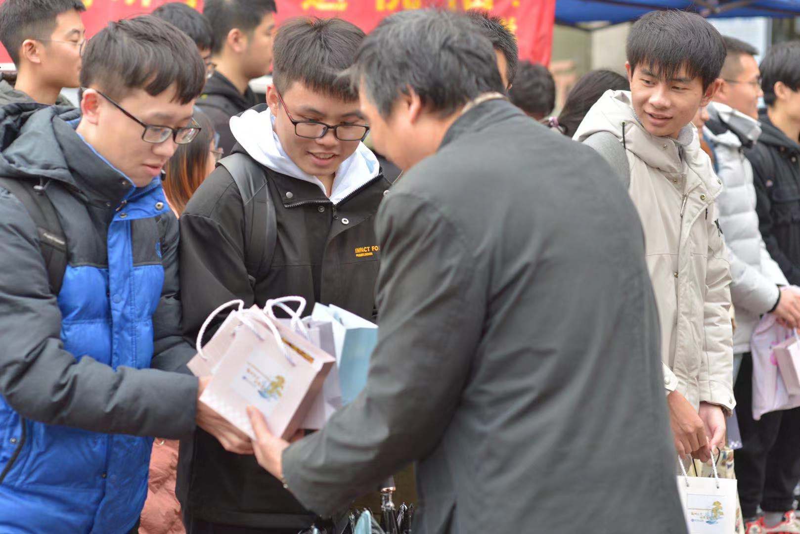 活动期间,学院在宿舍区设立了线下爱心祝福点,为所有考研同学准备了冬季限定温暖包,并为他们提供牛奶、巧克力、饼干,配发文具,时刻提醒学生在考研期间养成规律饮食、文具准备充分的习惯。学弟学妹们也利用休息时间,将自己亲自写祝福信和明信片送进了学长学姐的寝室,传进了他们的心里。学院微信公众号“水闻天下”连续六天不断线,通过文字、 图片、视频、音频等形式推送着老师的寄语、学生的祝福,传达着学院对考研学子的关怀。“学长,考研加油,等你凯旋归来”、“学姐,认真复习之时也要记得好好休息”,在寒冷的冬季与紧张的备考之际,增添了暖意。来自四海各地的校友们的祝福与经验分享更是跨越空间距离,陪伴着考研学子冲刺“最后一公里”。