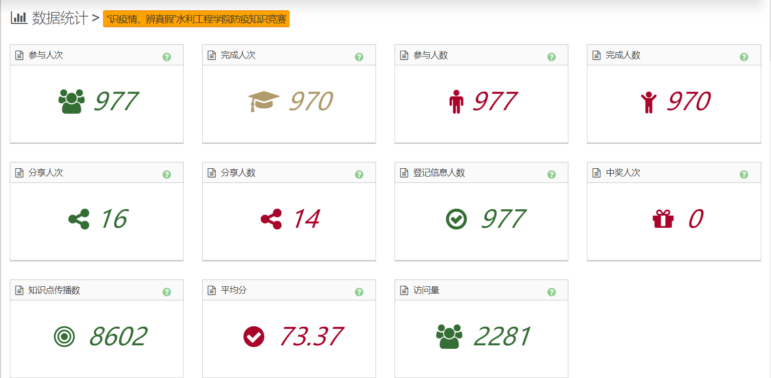 为引导水利学子全面掌握新型冠状病毒的防护知识,提高自我防病意识,增强水利人打赢疫情阻击战的信心和决心,水利工程学院在2月17日至2月20日期间组织开展了“识疫情·辩真假”水利工程学院网络防疫知识竞赛。
