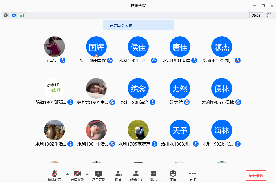 2020年6月8号晚,水利工程学院勤助部通过腾讯软件召开会议,布置了“诚信月”系列主题活动,并介绍了国家资助政策。本次会议由勤助部干事汪国辉主持,资助工作辅导员邓奕琳,勤助部全体成员以及2019级全体生活委员及班长参与。