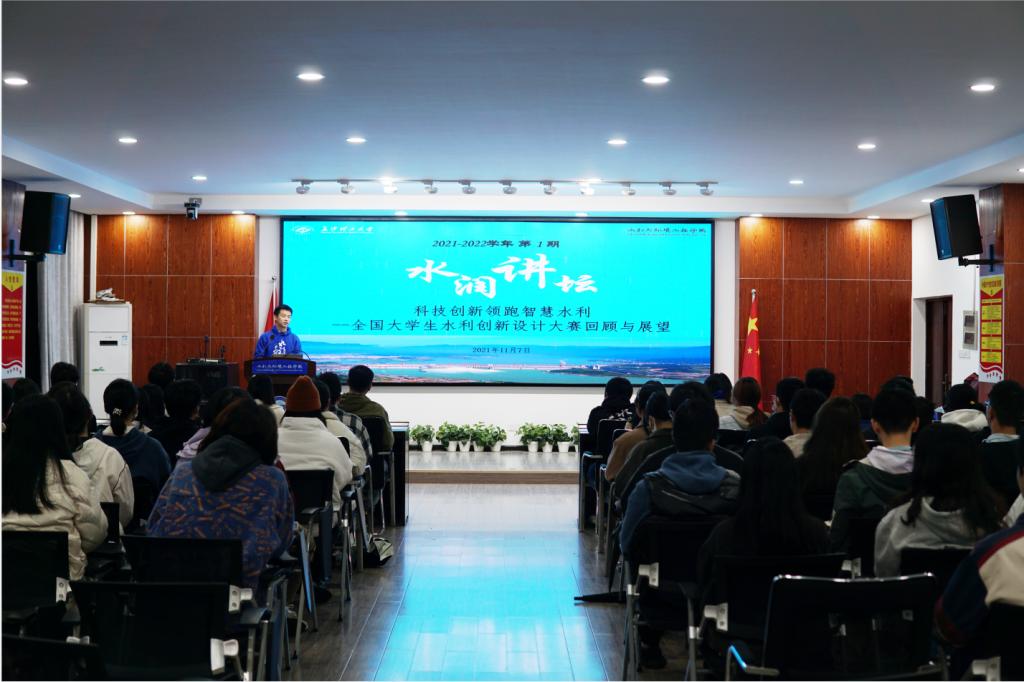 汪磊详细地向同学们介绍了全国大学生水利创新设计大赛的赛制及要求,重点分析了全国水利创新设计大赛自举办以来发生的变化以及对获奖作品的共性特点进行了全面剖析。