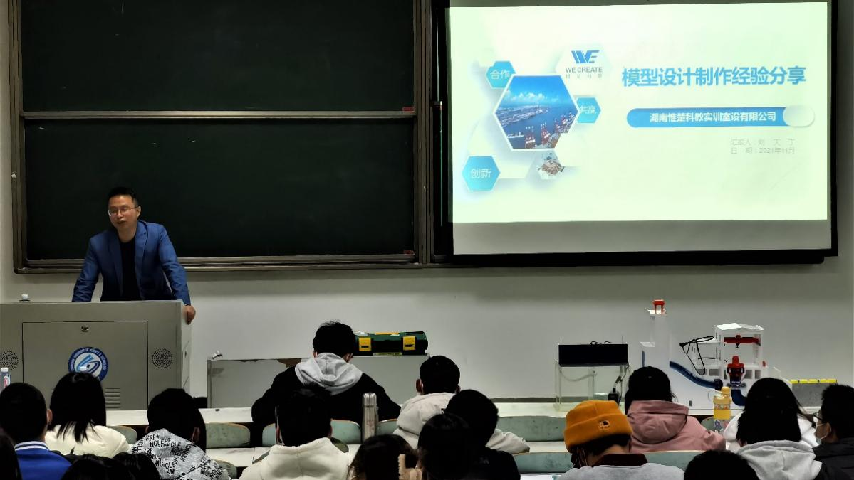 11月23日晚,水利与环境工程学院在金盆岭校区6号教学楼208举办第二届“大禹杯”水利模型设计制作经验分享会,此次分享会由湖南惟楚科教实训室设备有限公司总经理刘天丁主讲,院党委副书记银波、辅导员甯子豪出席了分享会,第二届“大禹杯”参赛选手代表“线上、线下”双渠道参与了本次活动,分享会由王皓淞主持。