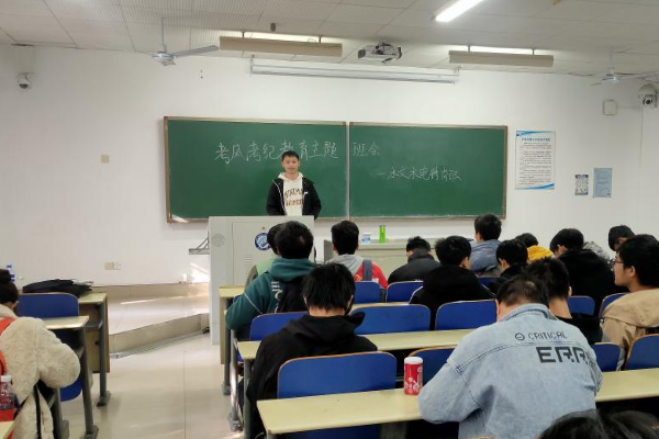 为严肃考风考纪,加强诚信教育,12月3日-7日水利与环境工程学院以班级为单位组织召开“诚信考试,弘扬正气”主题班会,覆盖学院所有行政班级,会议由各班班长主持。