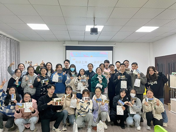 活动现场,全体考研学生集体观看了支部录制的“青春正当时”祝福加油视频,支部2019级党员为考研学生送上了装有手写祝福明信片、考研锦囊和精美书签的专属“考研祝福袋”。活动还设置了趣味游戏、现场送祝福等环节。