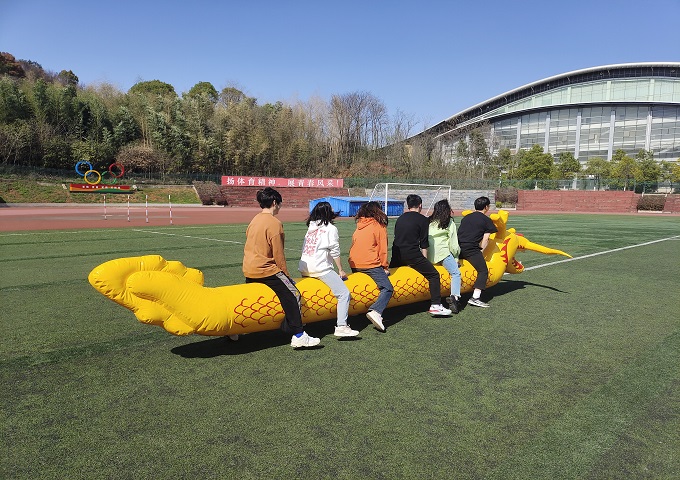 本次运动会活动项目有“旱地龙舟”、“心心相印”、“二十大关键词知多少”、“雷霆战鼓”、“穿越地雷”、“趣味拔河”6个项目。“旱地龙舟”环节中,水利学子拿起“龙舟”,整体协调步调一致,像利剑般冲向终点;“心心相印”环节两名同学原地大象鼻子转三圈后再背对背夹一圆球,队员们默契十足,比赛过程激烈和精彩;“二十大关键词知多少”环节不仅考验同学们的速度,还要充分了解二十大的相关知识。“雷霆战鼓”环节,队员之间相互配合自行调整“鼓”的位置,整个环节弥漫着紧张的气氛;“穿越地雷”环节,一名队员带上眼罩后在队友的指引下穿越矿泉水瓶组成的地雷,大家在紧张比赛的同时也收获了欢声笑语。最终,水利学院位列第四名,摘得三等奖。
