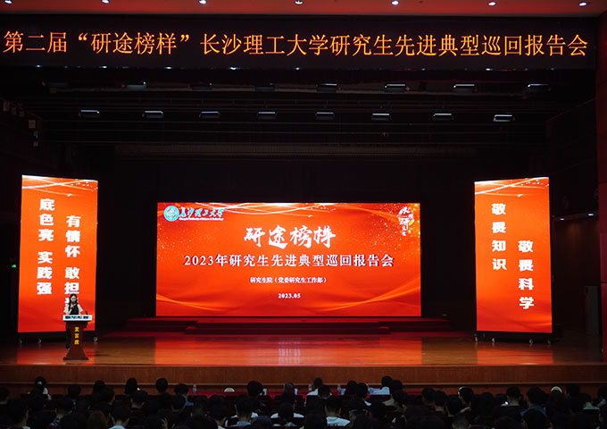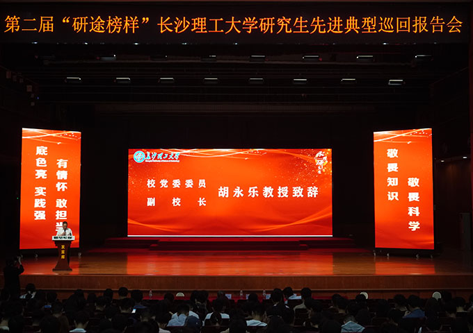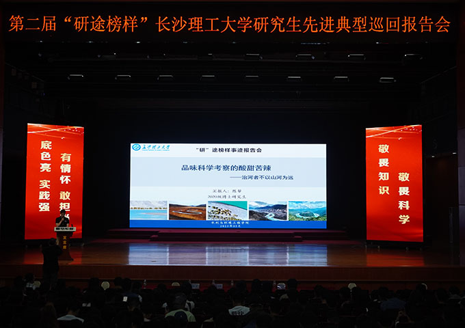 为深入贯彻落实党的二十大精神,推进拔尖创新人才培养,弘扬“敬畏科学、敬畏知识”的价值追求,发挥优秀研究生榜样的引领作用,5月6日晚19点,第二届“研途榜样”437必赢会员中心研究生先进典型首场巡回报告会在云塘校区大会堂举行。校党委委员、副校长胡永乐教授、研究生院院长杨华峰教授、学生工作部副部长闾兰老师、校团委副书记杨晨老师、研究生院副院长兼研工部部长田上老师以及来自各学院的党委副书记、研究生辅导员出席本次活动,来自水利与环境工程学院等多学院的近千名师生代表参加本次活动。
