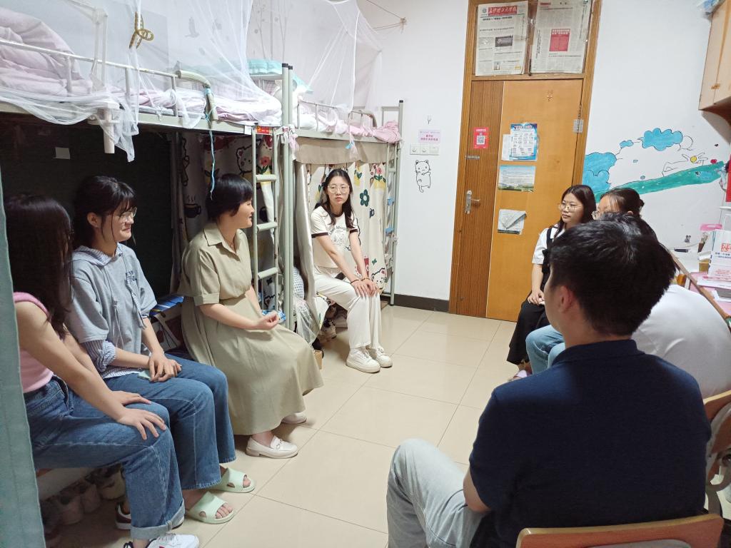 银波带领辅导员老师们深入学生宿舍,为党员宿舍挂牌,并与学生党员亲切交谈,了解学生近期的思想动态、学习情况和生活状况,了解毕业生的毕业论文、毕业设计的完成进度,她希望毕业生党员们要关心周边同学,积极提供帮助。此外,银波对正在推进的校园电动车整治工作询问党员们的想法,讲解了学校治理电动车的原因和方案,对同学们提出的疑问积极解答,勉励党员同志们要增强大局意识,提高政治站位,做好模范表率,积极引导同学们配合学校完成电动车的治理工作。