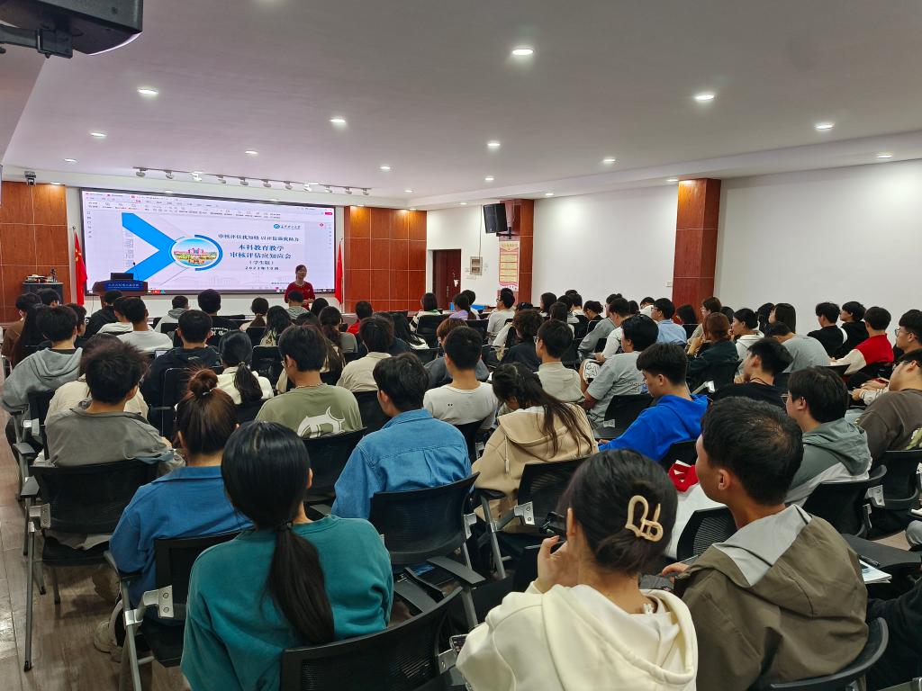 培训会从三方面展开,一是本科教育教学审核评估工作的介绍,包括什么是本科教育教学审核评估、为什么要开展本科教育教学审核评估以及如何开展,如何迎接专家评审工作。二是介绍了学校概况、办学定位、师资力量、校园文化、人才培养、科学研究等方面情况,深入解读了学校五育并举、三全育人工作格局建设、课程思政等发展核心要点。三是学院院情介绍,从专业结构、师资力量、学科建设、实习基地建设、人才培养五个方面展开详细介绍。培训中,刘老师着重讲述了学院的人才培养目标、具体的育人举措和育人成效,以丰富的案例、详实的数据加深了同学们对学院教育教学情况的了解。
