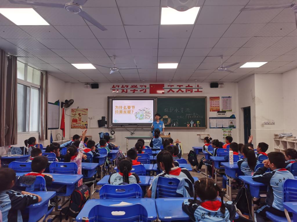 环保宣讲课堂上,大禹之子志愿者通过展现干涸的土地、枯萎的庄稼、被污染的环境等图介绍了地球上用水紧缺的现状,生动的画面给小朋友们留下了深刻的印象。随后,大禹之子志愿者向小朋友们介绍了世界水日的由来、意义,普及了有关水的知识,并分享了生活中的环保小妙招。