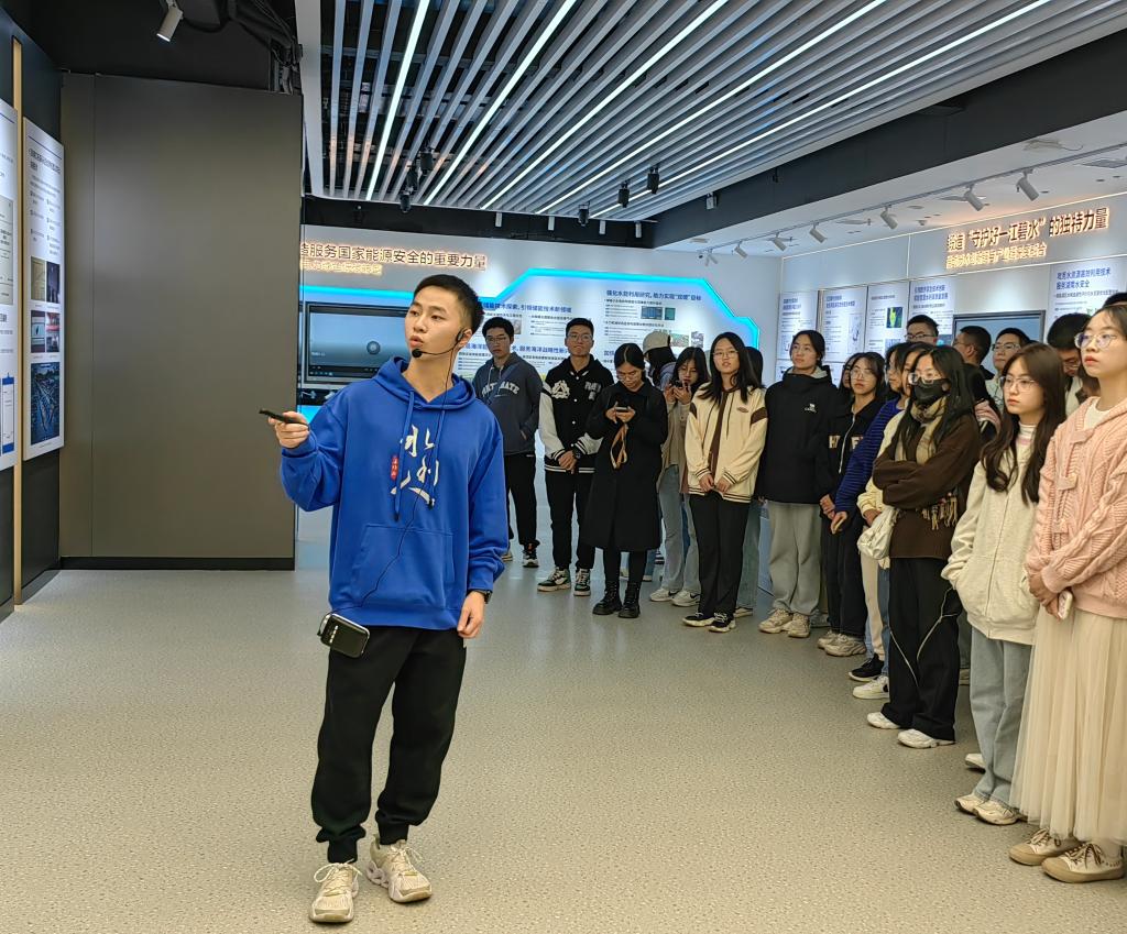 “锻造好守护一江碧水的独特力量原来可以从这些方面去努力。”“这个实验室好高大上,信息化十足,还可以实时显示洞庭湖的水文数据。”同学们纷纷惊叹于洞庭湖实验室充满现代科技感的布局设计。讲解员介绍了洞庭湖治理的重大意义、治理现状、实验中心研究方向等知识,让同学们了解到传统水利、生态水利、智慧水利的区别与联系,充分了解到水利科学的应用与前景,体会到“守护好一江碧水”的时代重任。