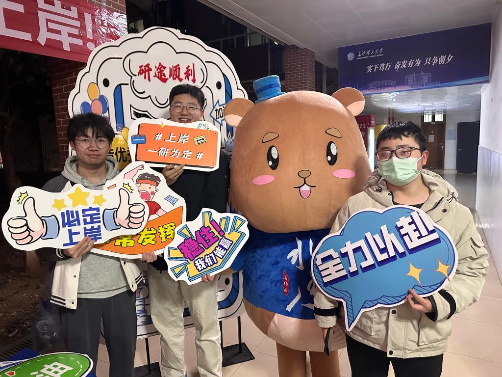 2024年全国硕士研究生考试在即,为帮助考研学子坚定信心、稳定心态、鼓舞学生士气,12月12日水利学院在行健轩六栋一楼大厅开展了考研冲刺助力活动,学院党委书记喻玲娜、党委副书记银波、副院长盛丰、李毅、班主任张伟、辅导员王正博、张海林出席。