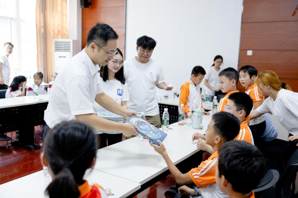 刘慎柏、陈杰为同学们送上了书籍《水百科》,拓宽他们的知识面,点燃同学们学科学、爱科学的热情。
