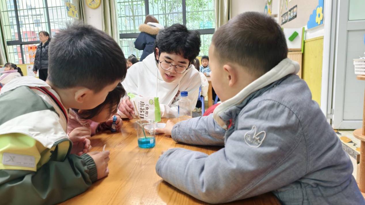接下来,志愿者在强调了实验安全的重要性后,引导小朋友们分组开展了模拟冰川融化的实验。模拟冰川融化的简易实验直观展示了冰川融化给极地动物们带来的影响和危害,不仅让小朋友们了解到冰川融化的严重性,还激发他们对生态环境保护的关注,强化环保科普教育,环保意识已悄然扎根于小朋友心中。