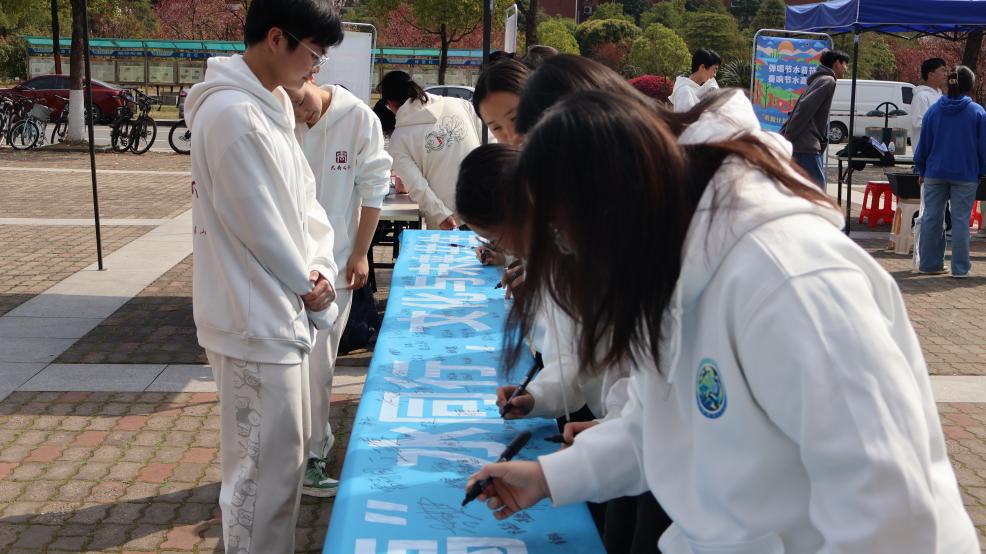 本次活动紧密围绕“中国水周”主题“推动水利高质量发展,保障我国水安全”,通过专题海报、签名承诺、互动体验等形式,多维度倡导节水护水理念。在主题签名环节中,师生们郑重签下姓名,共同承诺“珍惜水资源,践行节水优先”,累计收集承诺书300余份,彰显了青年群体对水资源保护的坚定支持。