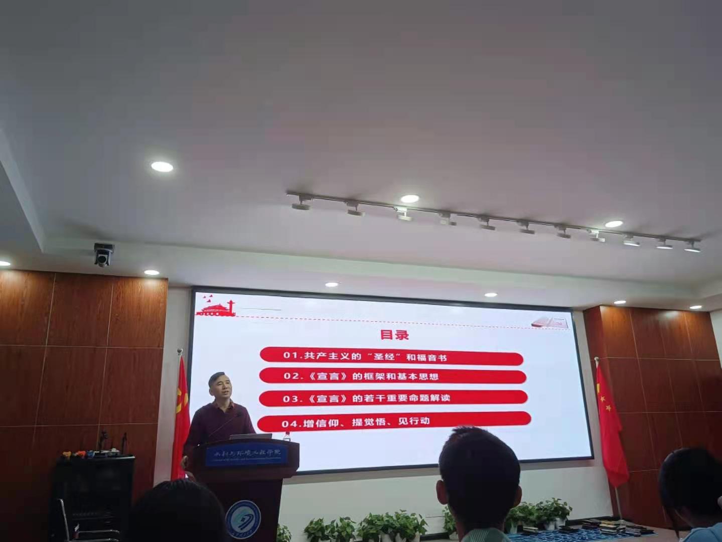 11月7日晚,水利与环境工程学院分党校在工科三号楼B319开展了入党积极分子培训班“把握真理力量,补足‘精神之钙’——《共产党宣言》解读”专题党课,本次党课由马克思主义学院黄前程老师主讲。