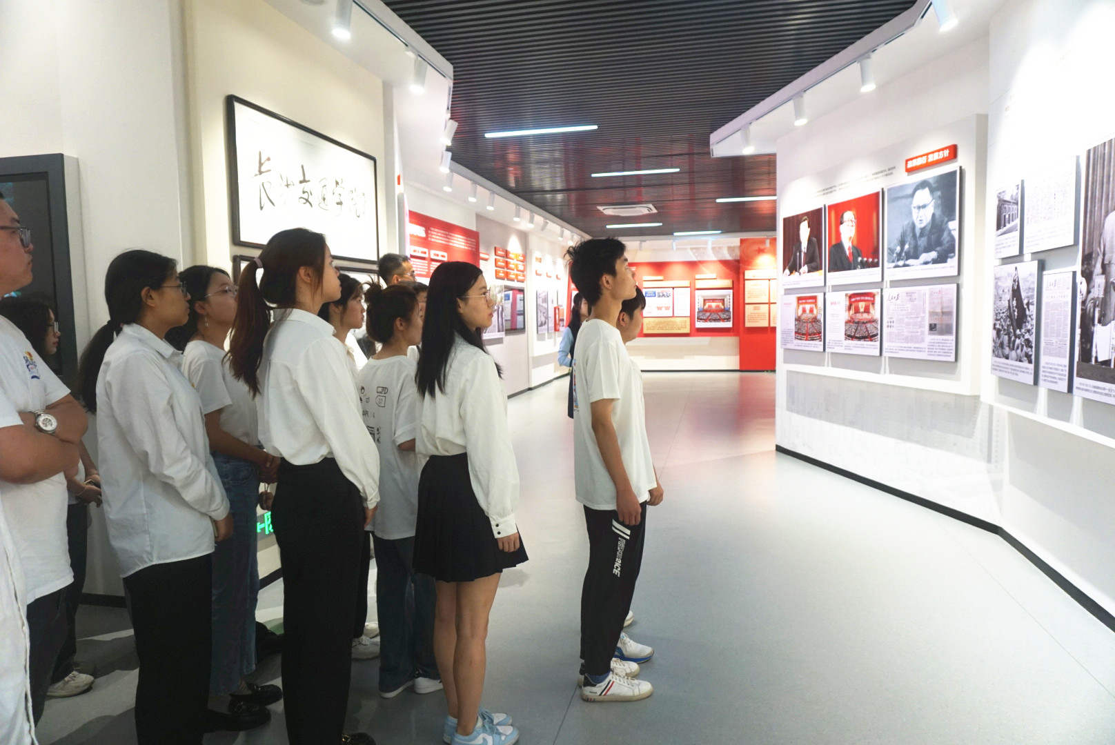 活动伊始,在讲解员的带领下,党员们参观了“三全育人”教育基地的“国之大者”“材之茂者”“师之贤者”“行之实者”四个篇章,深入学习我国高等教育的发展历史、长理为党育人、为国育才的办学历史和长理师生服务人民、建设祖国的生动实践。
