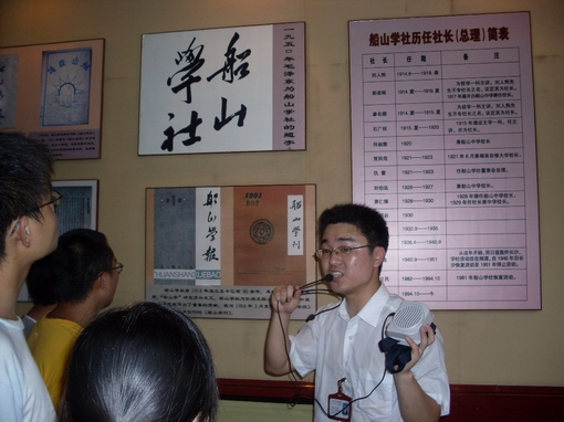 虽然烈日炎炎,但学员们参加活动的热情丝毫没有受到影响。在市博物馆两位讲解员的带领下,学员们先后参观了毛泽东塑像广场、中共湘区委员会旧址以及改革开放三十年展览等颇具教育意义的景点。随后,学员们跟随讲解员步行来到相隔不远的湖南自修大学旧址参观学习。据介绍湖南自修大学是毛泽东、何叔衡等于1921年8月在长沙船山学社旧址创立的,它是中国共产党成立后最早的一所传播马克思主义和培养党、团干部的革命学校。