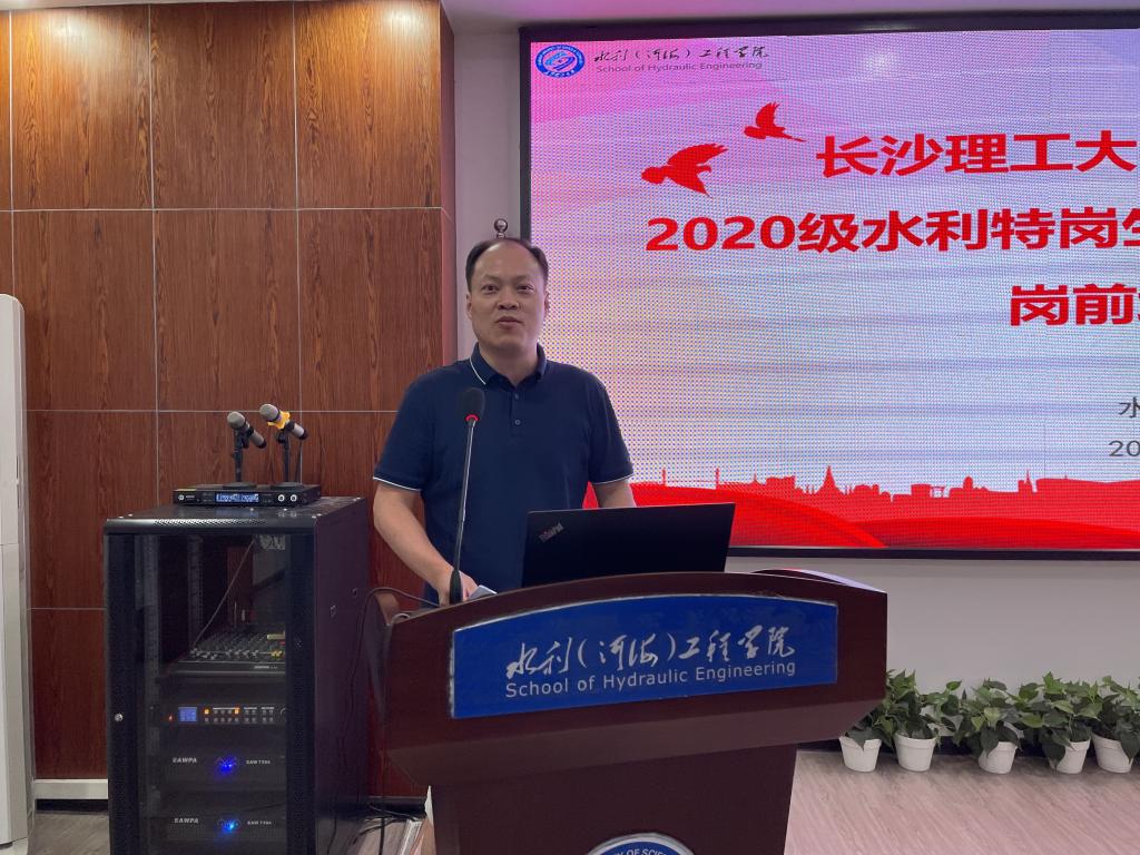 7月12日,水利学院召开2020级水利特岗生暑期跟岗实习动员暨岗前培训大会,院党委书记喻玲娜、院长陈杰、副院长盛丰、水利水电系和水文系全体指导老师、学工办老师以及2020级特岗班全体同学到场参会,会议由院党委副书记银波主持。