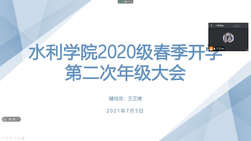 7月5日,水利学院召开2020级学生第二次年级大会,本次云会议由年级辅导员王正博主讲,全体同学参会。