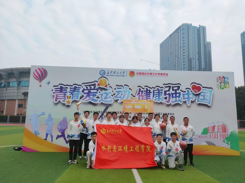比赛开始前,队员们个个情绪高涨,铆足了精神准备一显身手。 队员们高喊着“欢乐跳跳跳,健康哈哈笑”的口号助威,充分展现出了水利学子的朝气与蓬勃。