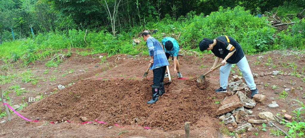 悉心接受了两名技术指导人员的教导后,同学们合理分工,通力协作。有的扛起锄头把土壤犁松,有的挖出供作物生长的小坑,还有的弯腰播下种子。大家有说有笑,呈现出一片和乐融融的景象。活动中,同学们从指导人员学习到了黄瓜以及小番茄的播种方式,按照学到的知识在实验田中播下了种子。