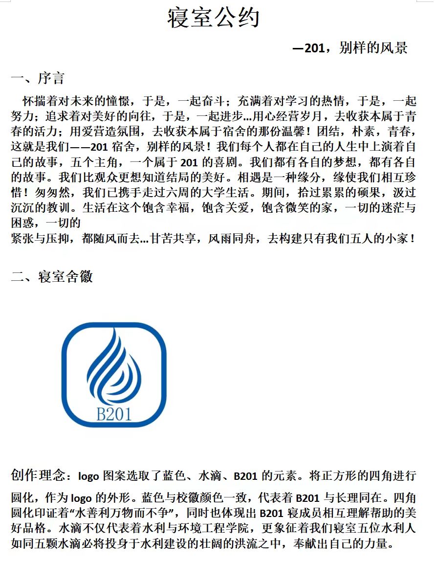 此次活动,以公约创作比赛为载体,加强了宿舍成员间的交流,提高了宿舍凝聚力和团结力。希望2023级水利学子能以本次活动为契机塑造出与人友爱,团结和睦的宿舍氛围,尽快适应寝室的集体生活。