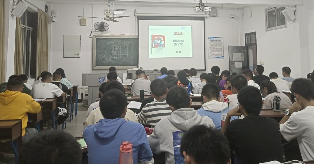 胡月首先讲述了人际、非暴力沟通的重要性并列举了语言暴力的10种表现形式,让同学们找到了沟通的误区。最后,胡月着重阐述了非暴力沟通的理念、四要素,鼓励同学们让爱融入生活,加强非暴力沟通的练习。