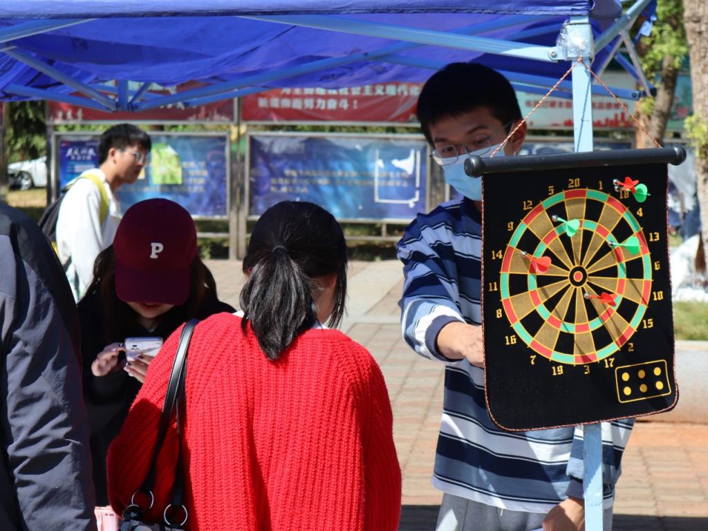 水利学院心理部联合外国语、电气学院心理部于2022年10月10日中午12:00-14:00于云塘校区汀香园门口联合开展了“双十”游园会活动。