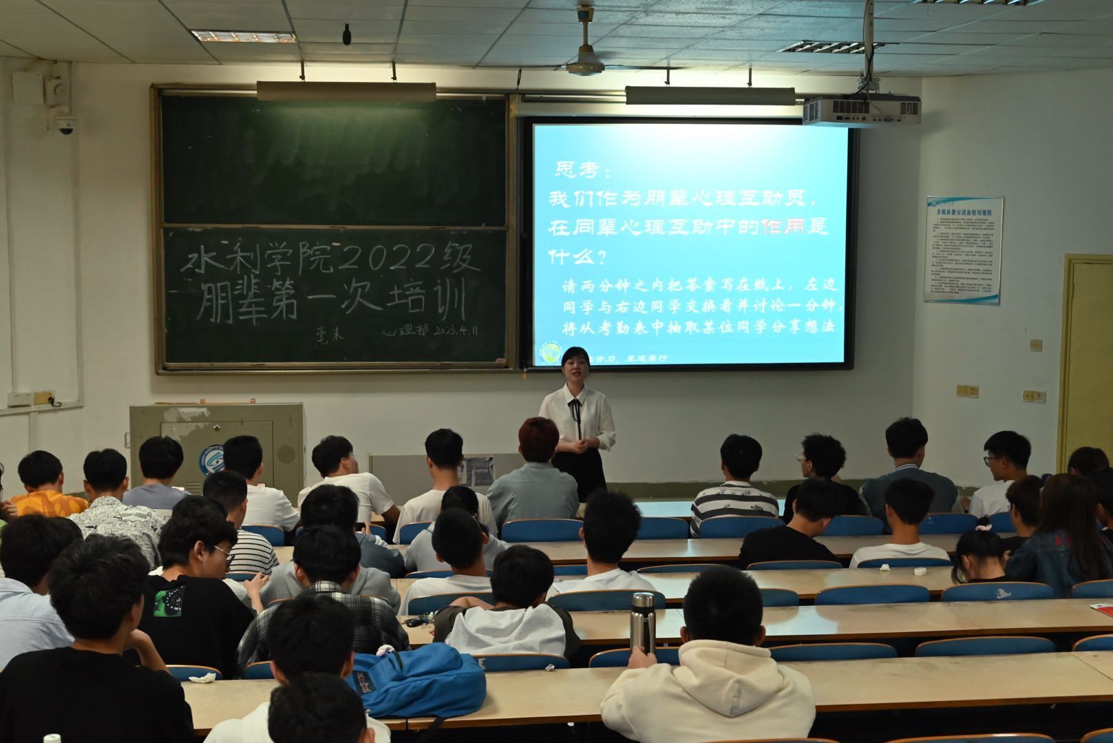 4月11日,水利学院在金盆岭校区六教210教室举行2022级心理互助员朋辈培训。本次培训由心理辅导员刘灿老师主讲,培训对象为2022级各班心理委员、寝室长及心理部实践团成员。