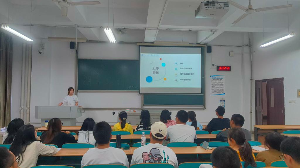 会议上,刘灿首先强调心理委员的重要性,并从四个适应角度强调需要关注的对象,心理异常表现的区分,心理状态变化原因,突发情况如何上报及处理等方面对心理委员进行培训。接着,刘灿简要介绍了本学年及2023级阳光启航相关活动,号召大家积极带动班级成员一同参与活动。最后,院心理部部长钟诗涵讲解了心委考核细则,周月报及班会要求,并对有关内容进行了答疑。