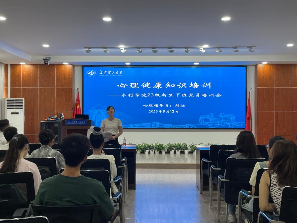 为了促进2023级新生身心健康的良好发展,更好的配合学院落实新生迎新及军训课程安排,明确好下班党员的工作内容,9月12日,水利学院在工三B319室召开2023级下班党员心理健康教育知识培训大会。大会由刘灿老师主持,2023级新生辅导员和2023级各班级的下班党员参加此次培训会。