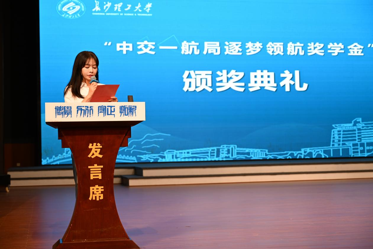 李娜宣读了中交一航局“逐梦领航”奖学金获奖学生名单,周红涛、田上为14位获企业奖学金的学生颁发荣誉证书,并合影留念。