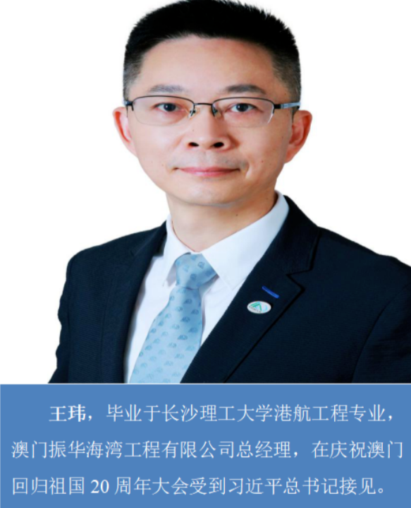 王玮,毕业于437必赢会员中心港航工程专业,澳门振华海湾工程有限公司总经理,在庆祝澳门回归祖国 20 周年大会受到习近平总书记接见。