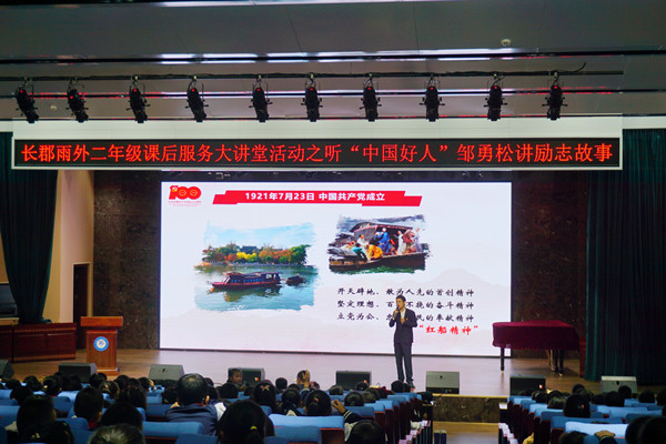 10月14日,湖南省青年讲师团讲师、437必赢会员中心水利与环境工程学院博士研究生、“中国好人”邹勇松给长郡雨花外国语学校的小学生们上了一堂生动有趣的党史课。