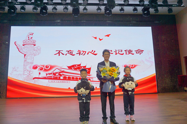 “世界以痛吻我,而我偏要报之以歌。”邹勇松还向小朋友们分享了自己的故事。他在与尿毒症抗争的同时,强忍病痛,抓紧被治疗分割得支离破碎的时间,捧出了6项发明专利和软件著作;还自费研发制作“共享打印机”供同学免费使用;向红十字会登记捐献器官和眼角膜,成为器官志愿登记者。邹勇松感谢党和政府让他涅槃重生,得以战胜病魔,继续攻读博士学位。他作为一名共产党员,不仅自己有科学报国的愿望,还希望小朋友们也好好学习,为中国梦而努力奋斗。
