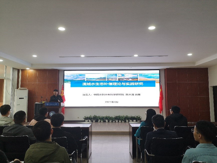 4月27日上午,我院洞庭湖水环境治理与生态修复湖南省重点实验室在必赢官网云塘校区工三B319成功举办“走进洞庭”系列学术研讨会(第六场)。会议邀请到了来自中国水利水电科学研究院阮本清教授级高工,开展了题为“流域生态补偿理论与实践研究”的学术报告。学校相关老师及研究生、本科生共60余人参加了此次研讨会。