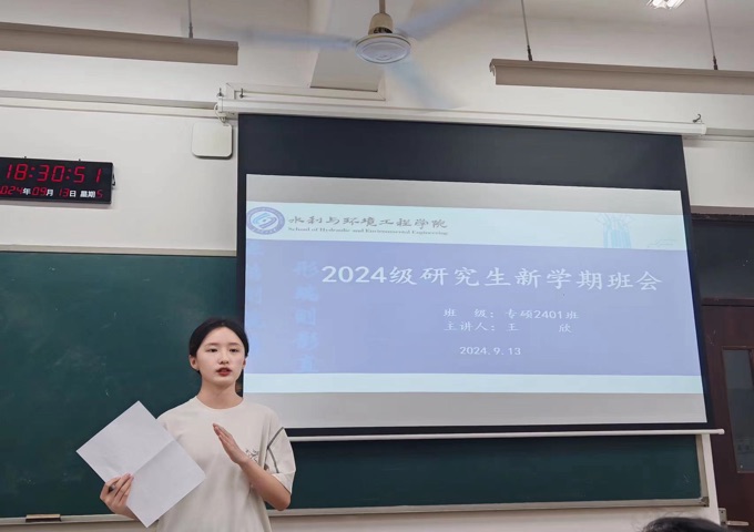 为提升新班级凝聚力,增进同学之间的互相了解,9月13日晚,水利学院在云塘校区工科三号楼以班级为单位召开了2024级研究生入学第一次班会。会议由院研会主席团成员主持,全体研究生新生参与。