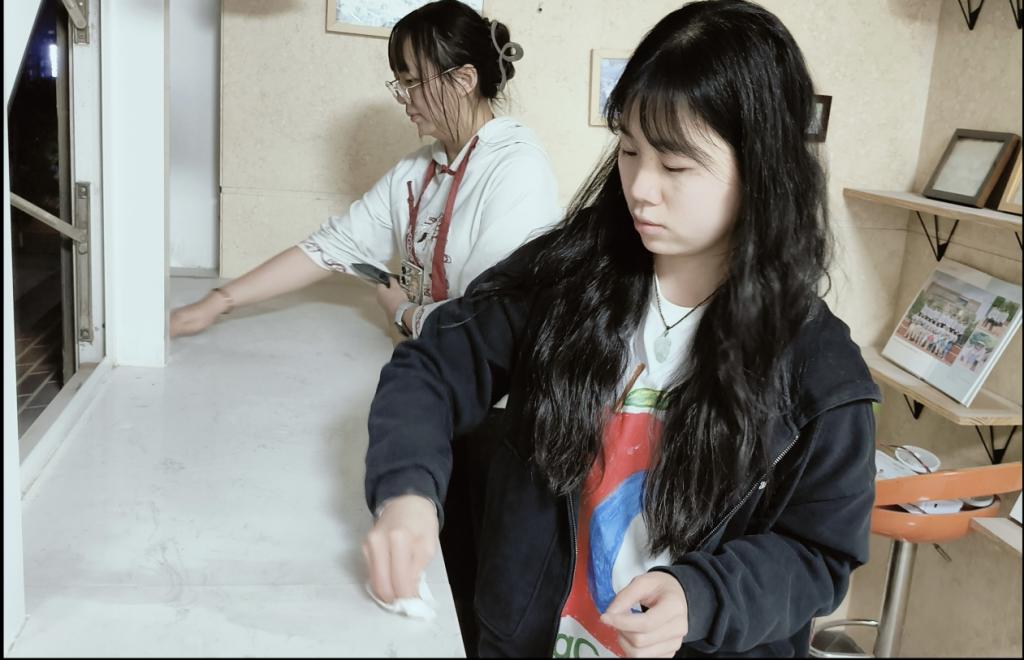 活动期间,多支志愿小队化身“工位管家”在新能源大楼1栋3楼及水利馆2楼同步开展工作:于孟丹、李彦、陈雨希、王雷竹小组深度清洁40余个工位。“键盘缝隙的灰尘最难清理,但看到焕然一新的桌面,一切都值得。”水文学硕2401班陈雨希感慨。团队还回收30公斤可循环废纸,让环保理念落到实处;刘融玄、谢金玺展开“地毯式”安全隐患排查,擦拭顽固胶痕,修复松动桌椅,“每张平整的课桌都是对学习的尊重。”刘融玄扶正显示器时感慨。龙彩欣、项良玉、王靖雯小组则深入新能源大楼实验室,严格执行“桌面无杂物、地面无灰尘、设备无污渍”的清洁标准,水利青年们以专业与热忱提升校园公共区域使用效率,师生反馈“仿佛置身新空间”。