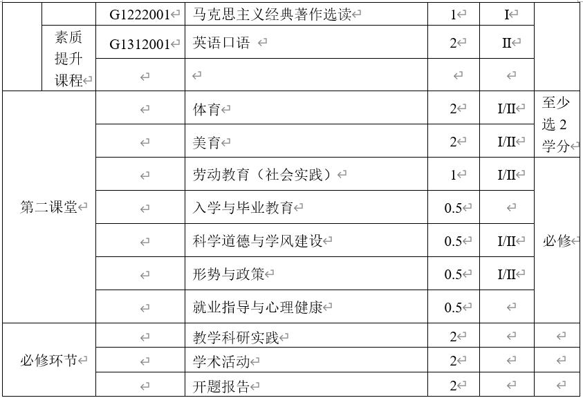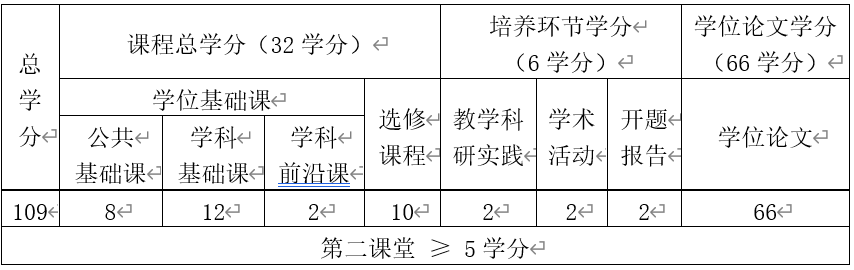 注:①选修课程中至少开设一门学科前沿课。②学生至少获得第二课堂5学分方可毕业。第二课堂活动学分认定见《437必赢会员中心研究生第二课堂学分管理办法》。其中,体育和美育类课程一共2学分,劳动教育(社会实践)1学分,科学道德与学风建设0.5学分,形势与政策0.5学分,入学教育0.5学分,就业指导与心理健康0.5学分。