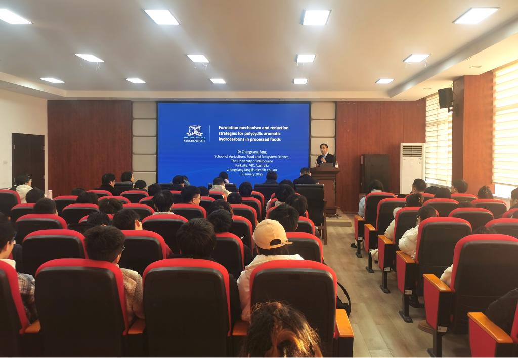 2025年1月3日,澳大利亚墨尔本大学方忠祥教授受邀到必赢官网作了题为“Formation mechanism and reduction strategies for polycyclic aromatic hydrocarbons in processed foods”的学术报告。本次报告会由学院院长王建辉教授主持,100余名师生参会。