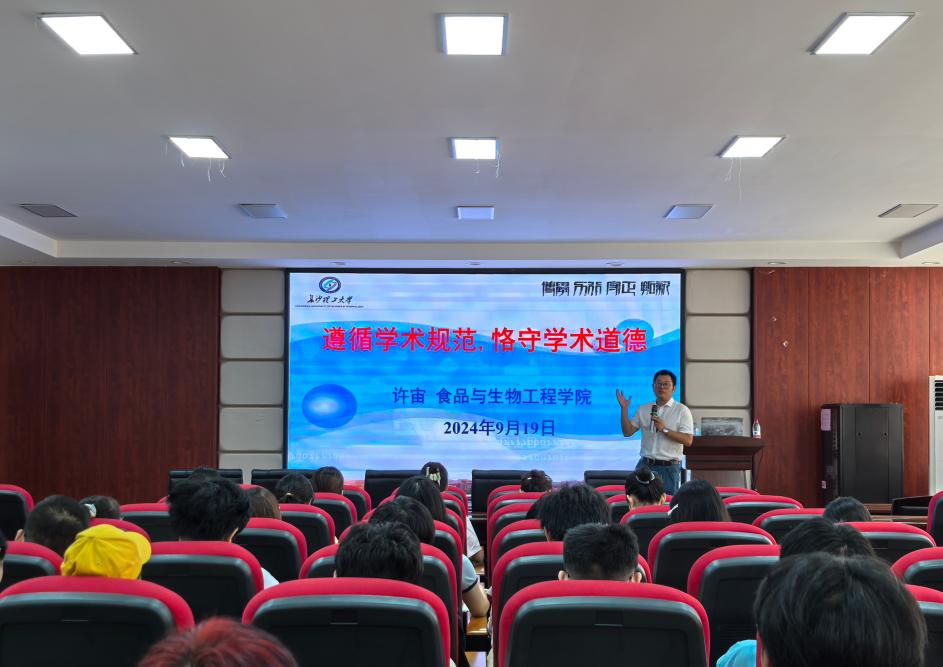 9月19日上午,食品学院在工三A320举办了2024级研究生新生入学教育科学道德与学术规范课程,由副院长许宙主讲,2024级全体研究生新生参加。