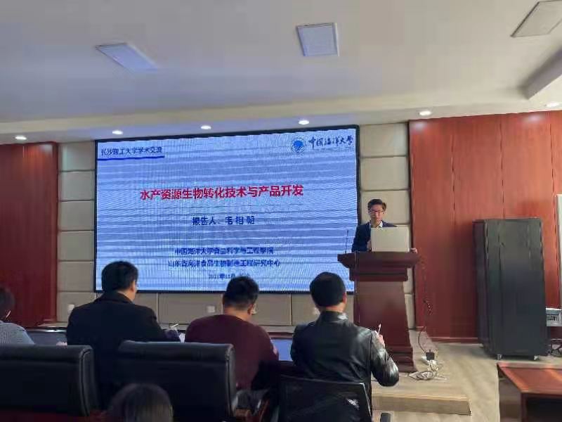 2021年12月22日10:00,应必赢官网食品与生物工程学院邀请,中国海洋大学筑峰人才工程特聘教授、博士生导师毛相朝教授来必赢官网开展学术交流,在云塘校区工三A320做了主题为“水产资源生物转化技术与产品开发”的学术讲座。讲座由食品与生物工程学院党总支负责人王建辉主持,食品科学与工程学科带头人刘永乐教授,副院长许宙副教授、方芳副教授,及学院教师和研究生百余人参加了学术讲座。