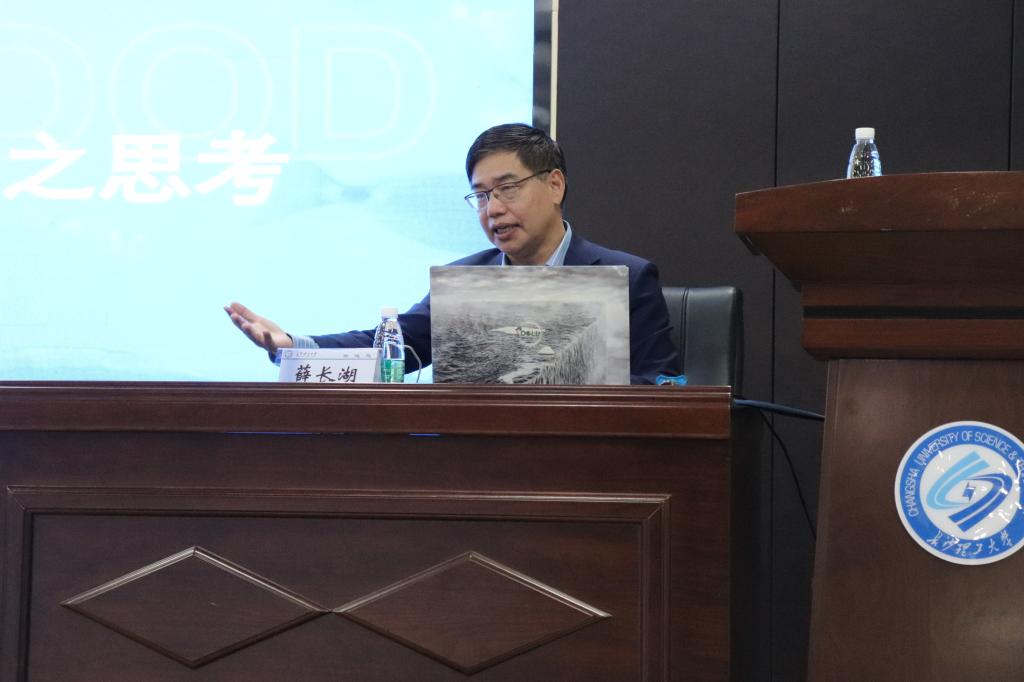 报告会上,薛院士强调,多年来我国食品领域的关注点多放在陆地上,然而海洋能给人类提供的食物是陆地的1000倍,并以水产品是开发功能性营养健康食品和生物制品的重要资源为引子,引发全体师生对海洋生物资源高效开发利用的深入思考。随后,薛院士以自身经历感悟为基础,结合其渊博的学识,先后以大宗水产资源中蛋白质、糖类及脂质的绿色加工为例,深入讲解了海水鱼、鲟鱼籽、海参、南极磷虾、小龙虾等大宗水产品和远洋战略性资源的开发利用现状和未来发展趋势。在讲解过程中,薛院士结合自身对蓝色海洋食品的认识,与师生们一同展望了蓝色海洋食品在服务国家海洋战略中的“着力点”,鼓励师生们要树立远大的科学理想,在挑战和沉淀中积累专业知识和技能,努力将个人发展同国家需求紧密联系在一起。