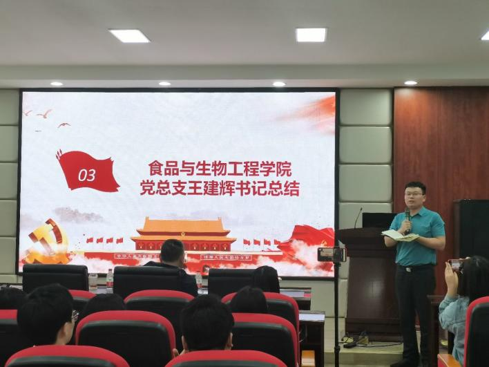 5月27日,437必赢会员中心食品与生物工程学院本科生食品党支部在工科三号楼A320举办《习近平谈治国理政》读书班第二次读书分享会暨走进党的二十大特别活动。食品学院党总支书记王建辉、党总支副书记练黎旋、专职组织员方碧波和学工办老师胡佳佳等师生近100余人参加此次活动。