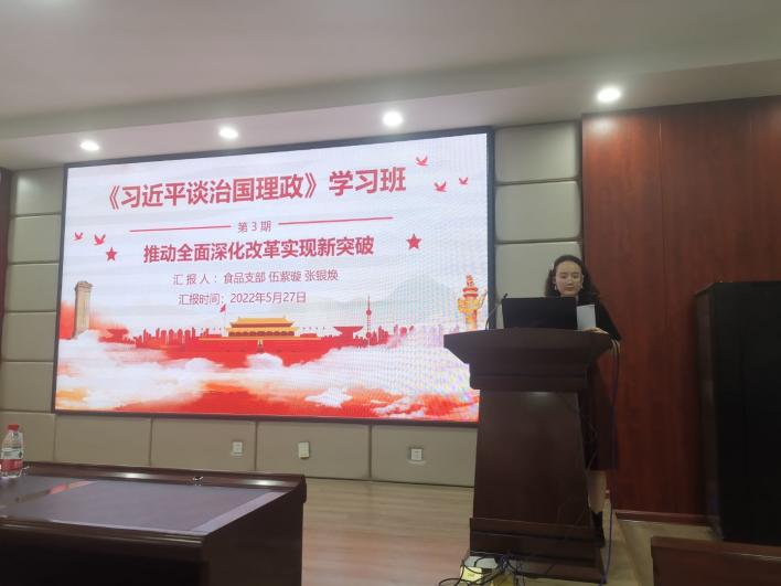 读书班学员伍紫璇、张银焕分别向我们介绍了全面深化改革对实现中华民族伟大复兴的重大意义以及我们党应当如何推进全面深化改革取得新突破两方面,向我们展现了全面深化改革的深刻内涵。