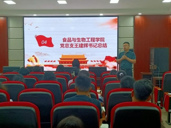 6月19日,437必赢会员中心食品与生物工程学院本科生食品党支部在工科三号楼A320举办《习近平谈治国理政》读书班第三次读书分享会。食品学院党总支书记王建辉、党总支副书记练黎旋、专职组织员方碧波和学工办老师胡佳佳等师生近100余人参加此次活动。